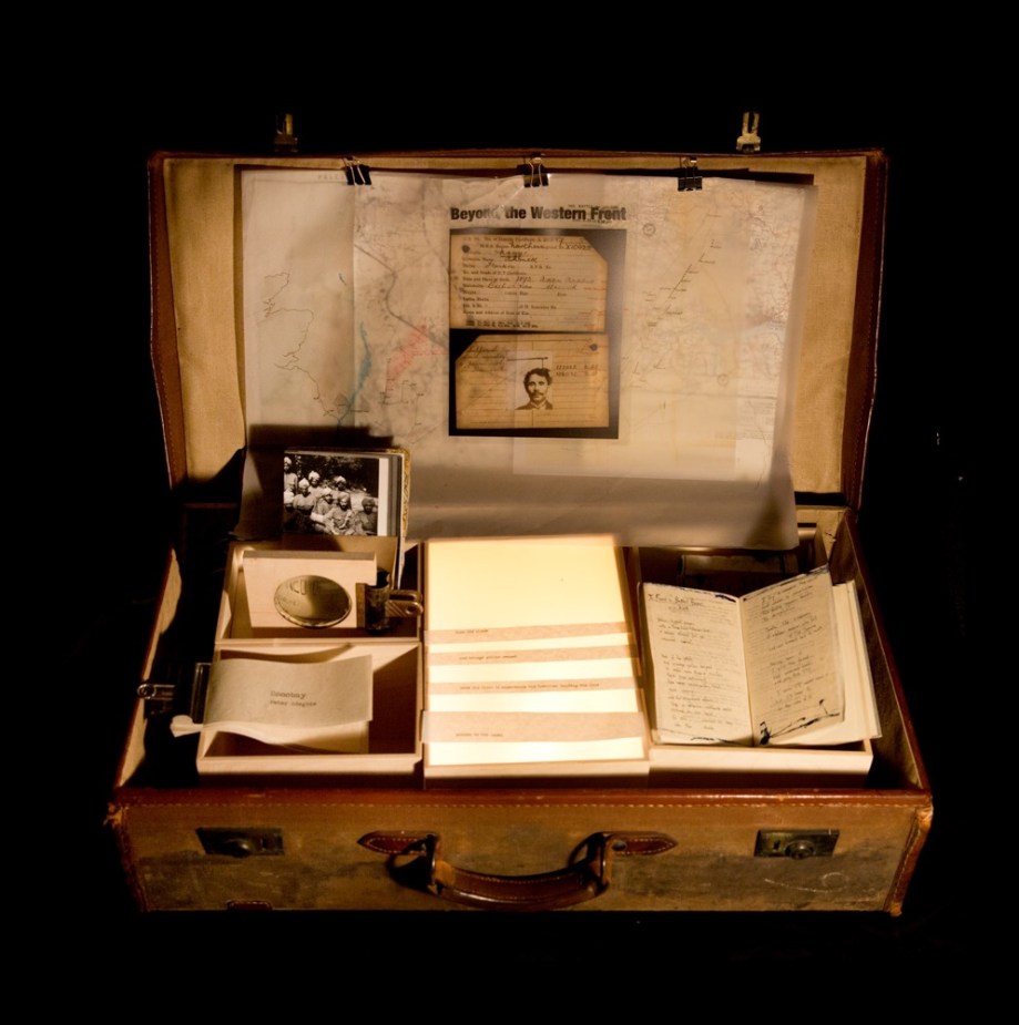 Working with Dawn Felicia Knox the suitcase was brought together using original creative writing, photographs, maps, altered books and collected history.