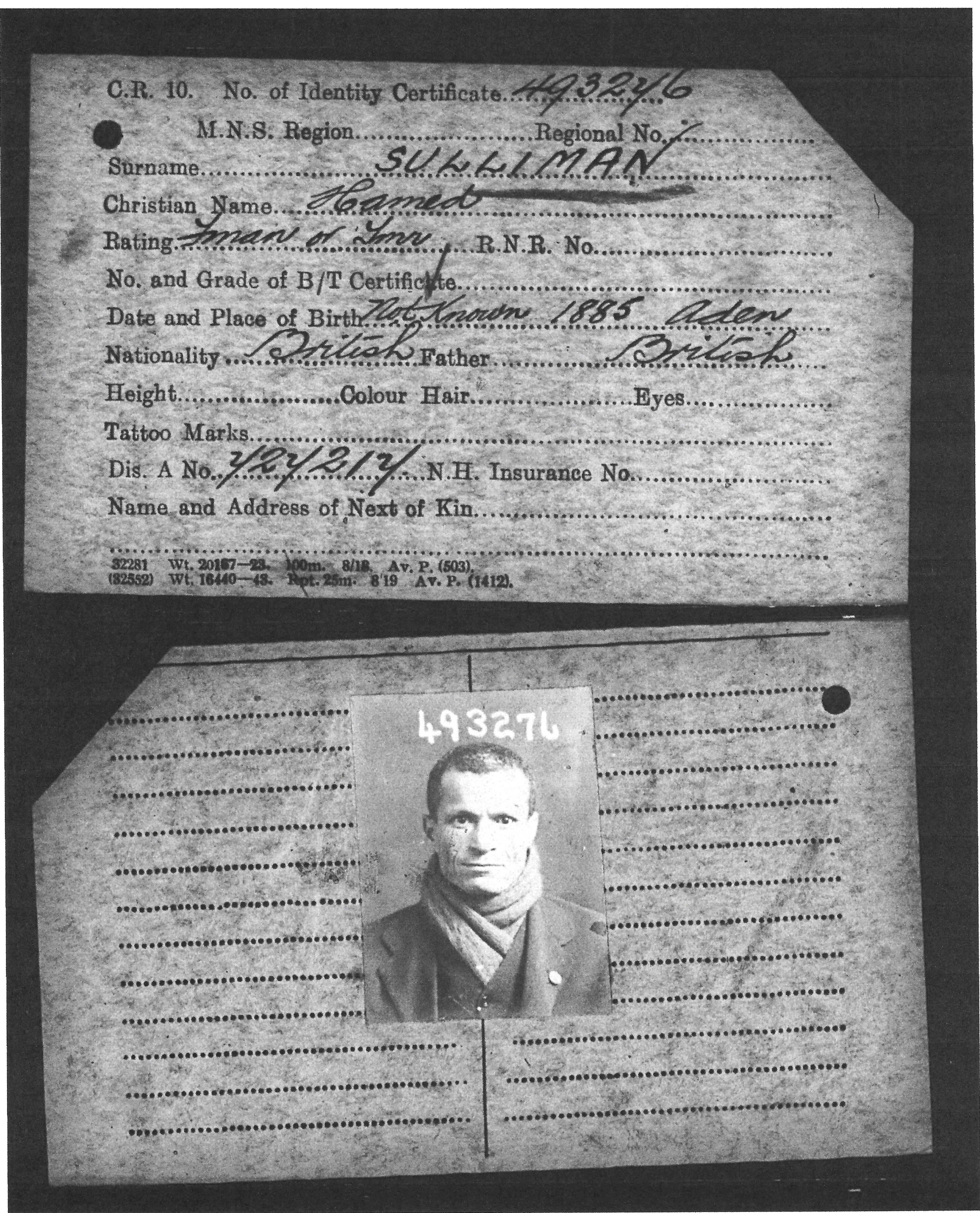 Hamed Sulliman, born in Aden, was a British subject. He had a British father which could have influenced his decision to come and settle in the UK. He came to South Shields as a seaman, working as a fireman when he was called up for the war. For his loyal service, he received the Mercantile Marine War Medal.